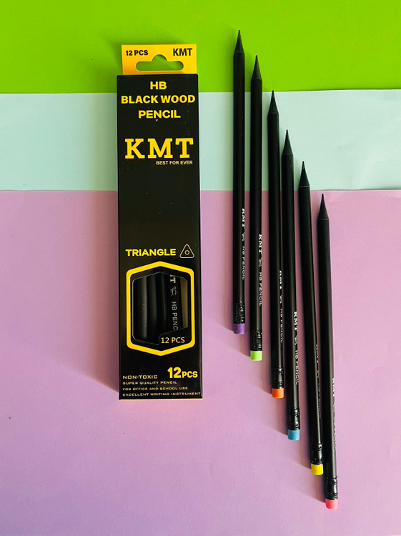 مداد سیاه پاکندار ذغالی برند KMT با مغز ذغالی تیره و پررنگ، خطوطی واضح و خوانا ایجاد میکند. پاکن سر مداد امکان اصلاح آسان اشتباهات را فراهم میکند.