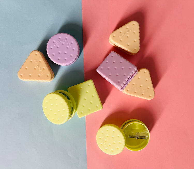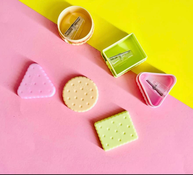تراش طرح بیسکوییت با طراحی خلاقانه به شکل بیسکوییتهای رنگی، ظاهری بامزه و جذاب دارد. این تراش با تیغه تیز و مخزن داخلی، تیز کردن مداد را آسان و تمیز میکند.