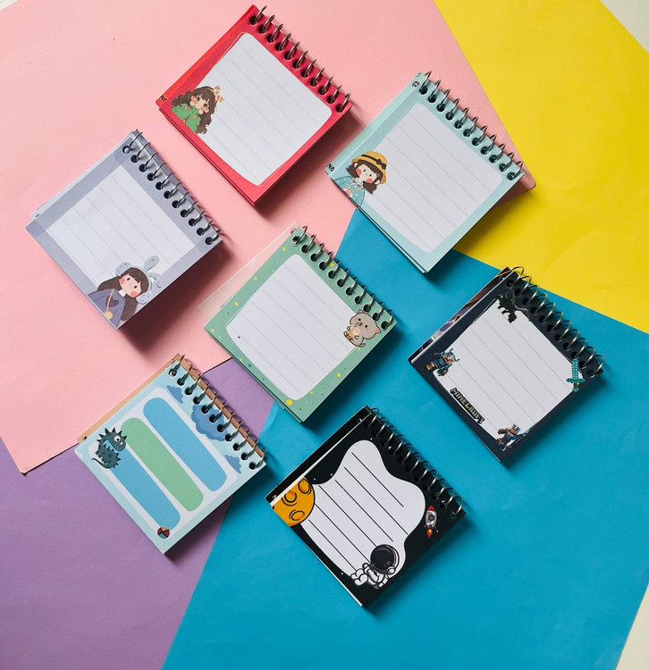 مینی دفترچه طرحدار با ابعاد مربعی ۷×۷ سانتیمتر، کوچکترین و بامزهترین دفترچه یادداشت شماست. با ۱۴ طرح متنوع و فانتزی، هر روز میتوانید دفترچهای جدید داشته باشید. این دفترچه به راحتی در کیف دستی یا جیب جا میشود و برای یادداشتهای کوتاه عالی است.